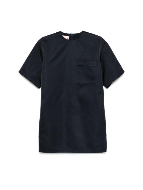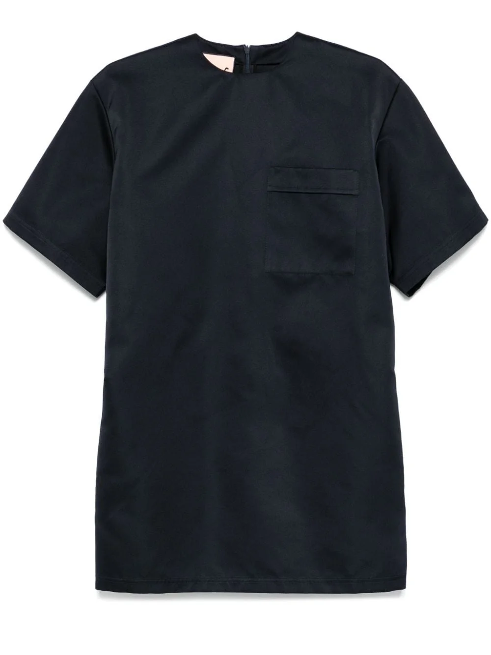 duchesse-satin mini dress Highlights - Navy blue - Duchess satin weave - Concealed rear zip fastening - Round neck - Short sleeves - Chest patch pocket - Two side inset pockets - Straight hem - Thigh-length Made in Italy Composition Polyester 100% SIZE & FIT Model measurements Height 5 ft 11 in(1.8 m) Bust/Chest 32.67 in(83 cm) Hips 35.03 in(89 cm) Waist 25.19 in(64 cm) FittingInformation Designed to be unstructured, offering a loose fit throughout Made from a midweight non-stretch fabric