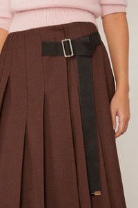 The Planc C Skirt in Brown Melange is a standout piece from their Fall 25 Collection. This midi skirt features allover pleating with a side feather detail. Wear yours with a sweater and boots. FIT DESCRIPTION MODEL MEASUREMENTS - Fits true to size, take your normal size - Midi length - Allover pleating - Feather detail - Side buckle - Mid rise - Turkey Feather 60%, Polyester 52%, Virgin Wool 46%, Ostrich Feather 40%, Elastane 2% - Harriet is wearing a size 38/ 2 US - Bust: 32" - Waist: 24" - Hips: 30.5" - Height: 5’8.5”