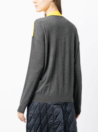 fine intarsia-knit jumper medium grey/canary yellow wool intarsia knit crew neck long sleeves straight hem Made in Italy Composition Body: Wool 100%, Nylon 100% SIZE & FIT Model measurements Height 5 ft 11 in(1.8 m) Bust/Chest 28.34 in(72 cm) Hips 35.43 in(90 cm) Waist 23.62 in(60 cm) FittingInformation This piece fits true to size. We recommend you get your regular size Cut for a slim fit Made with a lightweight fabric Washing instructions Dry Clean Only