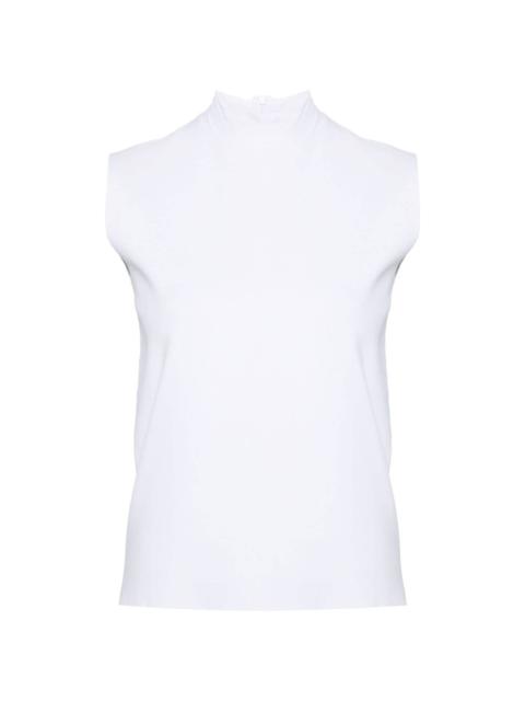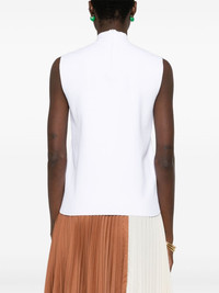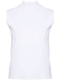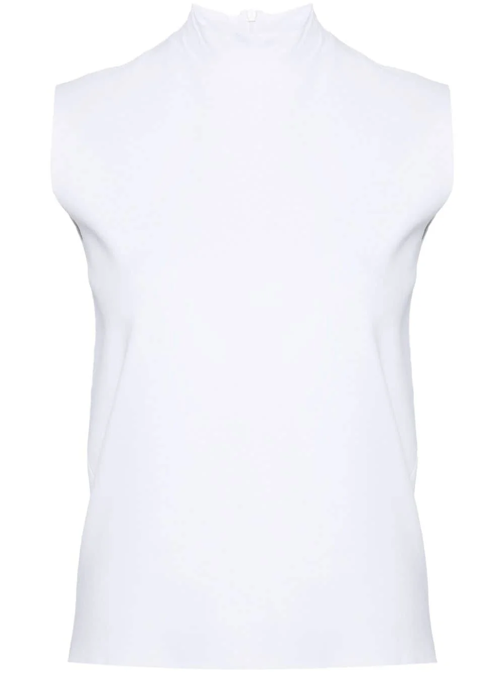 fine-knit mock-neck top Highlights - White - Fine knit - Stretch-design - Mock neck - Sleeveless - Concealed rear zip fastening - Raw-cut hem Made in Italy Composition Viscose 83%, Polyester 17% SIZE & FIT Model measurements Height 5 ft 11 in(1.8 m) Bust/Chest 32.67 in(83 cm) Hips 36.22 in(92 cm) Waist 24.4 in(62 cm) FittingInformation Designed for a slim fit that sits just away from the body offering a close yet comfortable fit Made with a midweight knit, this piece offers some stretch This piece fits true to size – take your usual size