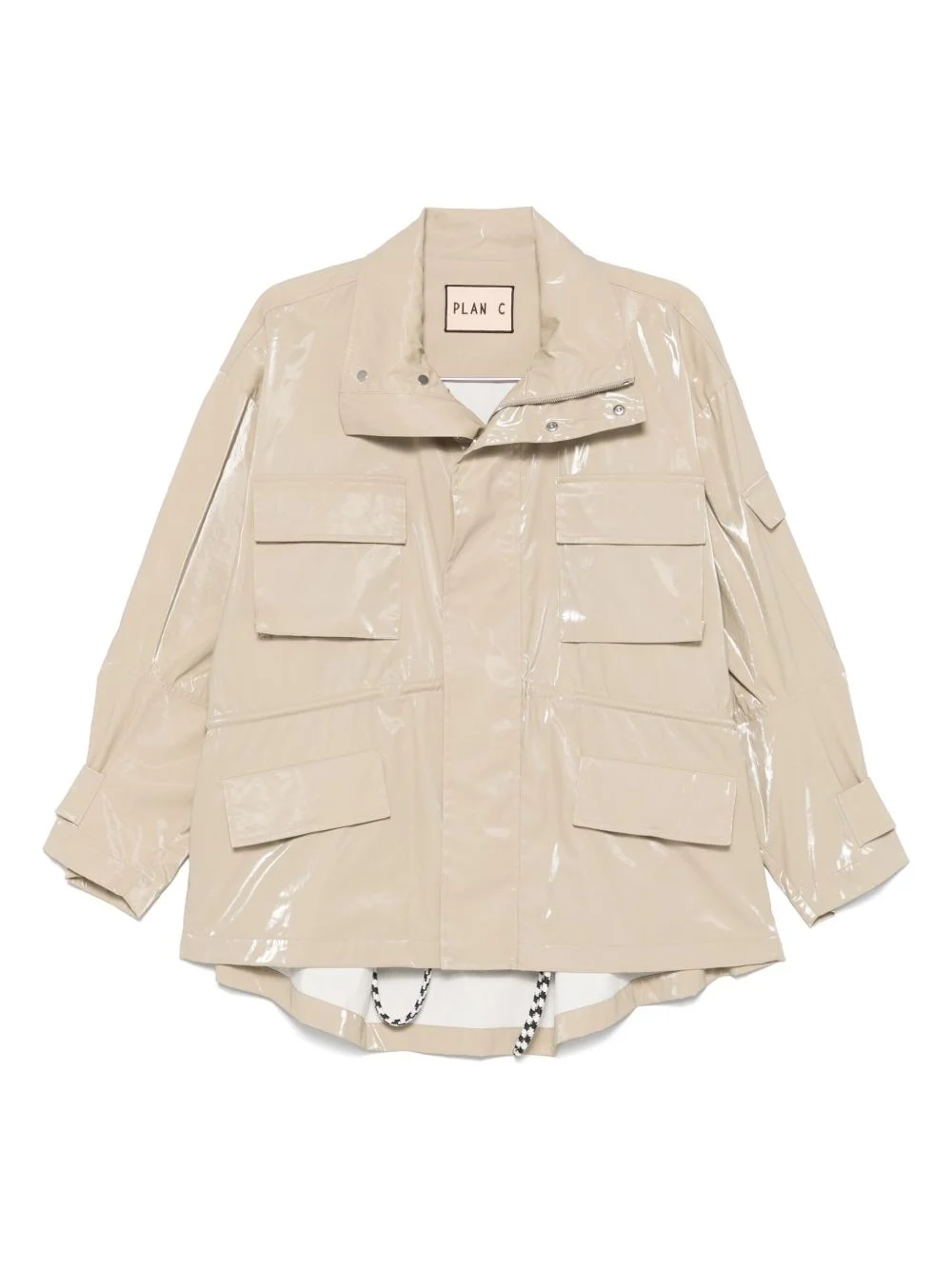 glossy cotton jacket Highlights - Sand beige - Concealed front press-stud fastening - Concealed front zip fastening - Two chest flap pockets - Two side flap pockets Made in Italy Composition Lining: Cotton 100% Outer: Cotton 68%, Polyurethane 32% SIZE & FIT Model measurements Height 5 ft 11 in(1.8 m) Bust/Chest 31.49 in(80 cm) Hips 35.82 in(91 cm) Waist 24.8 in(63 cm) FittingInformation Designed for an oversized fit, offering additional room throughout The adjustable drawstring means that you can adjust this piece’s fit to suit your comfort and preference Made from a midweight non-stretch fabric