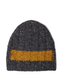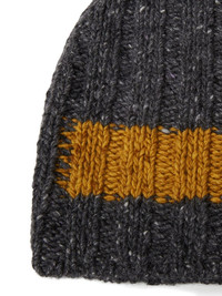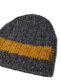 ribbed-knit beanie Highlights - Charcoal grey - Pull-on style - Stripe detailing - Ribbed trim Made In Italy Composition Polyester 82%, Cotton 13%, Linen/Flax 5%