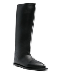 leather boots Highlights - Black - Calf leather - Smooth grain - Slip-on style - Contrasting trim - Pointed toe - Branded leather insole - Leather and rubber sole - Mid-calf length - This piece comes complete with a protective dust bag. Made in Italy Composition Sole: Rubber 100%, Calf Leather 100% Outer: Calf Leather 100% Lining: Calf Leather 100% SIZE & FIT Measurement CIRCUMFERENCE 14.56 in(37 cm) HEEL 0.59 in(1.5 cm) HEIGHT 14.76 in(37.5 cm) Sole height 0.39 in(1 cm)