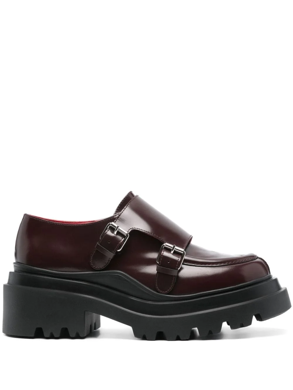 leather loafers Highlights - Bordeaux red - Leather - Patent finish - Monk strap - Moc stitching - Round toe - Branded leather insole - Chunky rubber sole Made in Italy Composition Outer: Patent Leather 100% Sole: Rubber 100% Lining: Calf Leather 100% SIZE & FIT Measurement HEEL 2.16 in(5.5 cm) Sole height 1.18 in(3 cm)