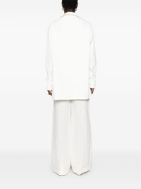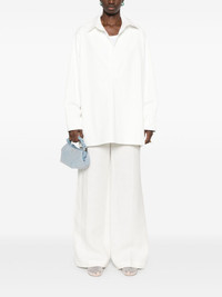 long-sleeve shirt Highlights - White - Buttoned cuffs - Side slits - Split neck Made in Italy Composition Polyester 82%, Cotton 13%, Linen/Flax 5% SIZE & FIT Model measurements Height 5 ft 10 in(1.77 m) Bust/Chest 32.28 in(82 cm) Hips 35.03 in(89 cm) Waist 25.19 in(64 cm) FittingInformation Designed to be unstructured, offering a loose fit throughout Made from a midweight non-stretch fabric