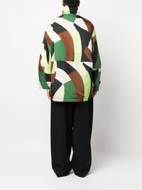 Messy Masses geometric-pattern jacket Highlights - Grass green/multicolour - Geometric-pattern print - Ripstop texture - Funnel neck - Concealed front fastening - Two chest flap pockets - Internal drawstring fastening waist - Drop shoulder - Long sleeves - Sleeve flap pocket - Press-stud fastening cuffs - Rear curved hem Made in Italy Composition Outer: Polyamide 100%, Polyester 56%, Cotton 22%, Cupro 22% Lining: Polyester 100% SIZE & FIT Model measurements Height 5 ft 10 in(1.77 m) Bust/Chest 34.64 in(88 cm) Hips 35.43 in(90 cm) Waist 24.8 in(63 cm) FittingInformation Designed for an oversized fit, offering additional room throughout The adjustable drawstring means that you can adjust this piece’s fit to suit your comfort and preference Made from a quilted non-stretch fabric, giving it no natural elasticity This piece fits true to size – take your usual size Washing instructions Dry Clean Only