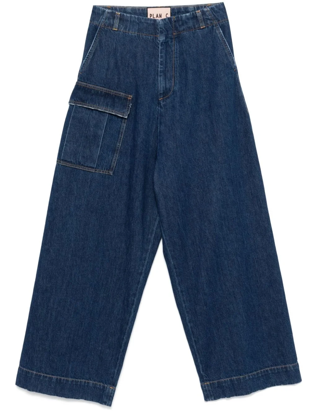 wide-leg jeans Highlights - Indigo blue - Cotton - Denim - Wide leg - Concealed front button, hook and zip fastening - High-rise - Belt loops - Contrast stitching - Drop crotch - Two diagonal pockets to the sides - Two front cargo pockets - Logo-debossed patch to the rear - Two rear patch pockets Made in Italy Composition Lining: Polyester 65%, Cotton 35% Outer: Cotton 100% Washing instructions Machine Wash
