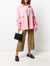 oversized shirt jacket pink spread collar front button fastening drop shoulder long sleeves two front flap pockets side slits straight hem Made in Italy Composition Acetate 61%, Viscose 39% SIZE & FIT Model measurements Height 5 ft 9 in(1.74 m) Bust/Chest 32.28 in(82 cm) Hips 35.82 in(91 cm) Waist 24.01 in(61 cm) Washing instructions Dry Clean Only