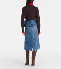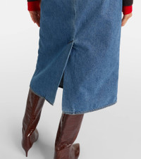 Daring experimentation and uncompromising quality are the pillars of the Milan-based label Plan C. This midi skirt is crafted from denim and boasts a charming peplum silhouette that adds layers to the look. Product Details - Material: 100% cotton - Care instructions: machine wash at 30 degrees - Made in Italy - Designer color name: Indigo - Item color: blue - Lining: 65% cotton, 35% polyester - Closure: zipped back - Short vent - Item number: P01088254 Size & Fit - Fits large to size - we recommend trying one size smaller - Non-stretchy fabric - The model seen in the picture is 178cm-5'10" and wearing a size IT 38