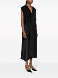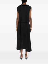 plisse-effect asymmetric midi dress Highlights - Black - Cotton - Asymmetric design - Plisse effect - Pleat detailing - V-neck - Multiple drawstring fastening - Cap sleeves - Two side inset pockets - Mid-length Made in Italy Composition Outer: Polyester 85%, Viscose 15% Lining: Cotton 100% SIZE & FIT Model measurements Height 5 ft 11 in(1.8 m) Bust/Chest 31.49 in(80 cm) Hips 36.61 in(93 cm) Waist 24.4 in(62 cm) FittingInformation Designed for a wraparound style that can be adjusted to your preference The adjustable tie waist gives a more adaptable and personalised fit Made from a midweight non-stretch fabric This piece fits true to size – take your usual size Washing instructions Dry Clean Only