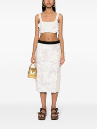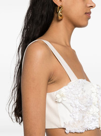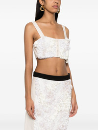sequin corset top Highlights - Ecru, white - Cotton blend - Corset style - Light sweetheart neck - Thin straps - Sleeveless - Sequin detailing to the front - Cropped - Square open back - Full lining - Front button fastening Made in Italy Composition Outer: Cotton 52%, Polyester 48% Lining: Cotton 100% SIZE & FIT Model measurements Height 5 ft 9 in(1.76 m) Bust/Chest 31.88 in(81 cm) Hips 35.43 in(90 cm) Waist 22.44 in(57 cm) FittingInformation Designed for a close fit throughout Made from a midweight non-stretch fabric This piece fits true to size – take your usual size Washing instructions Dry Clean Only