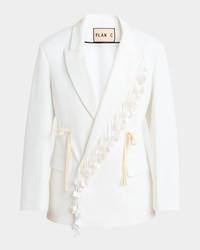 Sequin-Fringe Drawstring Double-Breasted Blazer Jacket