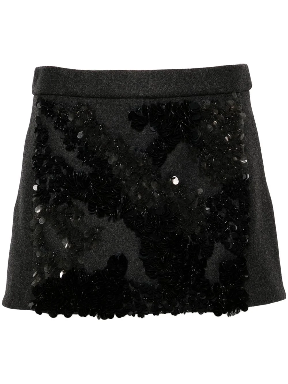 sequined melange-effect mini skirt Highlights - Grey - Virgin wool blend - Non-brushed fleece - Panelled design - Sequin embellishment - Melange effect - Concealed rear hook and zip fastening - Mid-rise - Dart detailing to the rear - A-line skirt - Partial lining - Straight hem - Thigh-length Made in Italy Composition Outer: Virgin Wool 68%, Polyamide 20%, Polyester 12% Lining: Cotton 100% SIZE & FIT Model measurements Height 5 ft 10 in(1.77 m) Bust/Chest 33.07 in(84 cm) Hips 37 in(94 cm) Waist 24.8 in(63 cm) FittingInformation This mini-length skirt is intended to be worn just below the waist Made from a midweight non-stretch fabric Washing instructions Dry Clean Only