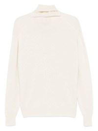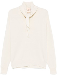 shawl-embellished sweater Highlights - Ivory white - Wool-cashmere blend - Knitted construction - Shawl-scarf detailing - Self-tie fastening - V-neck - Drop shoulder - Long sleeves - Ribbed cuffs and hem Made in Italy Composition Wool 70%, Cashmere 30% SIZE & FIT FittingInformation Designed for a relaxed fit, this piece allows for comfort and movement when worn Made with a midweight knit, this piece offers some stretch