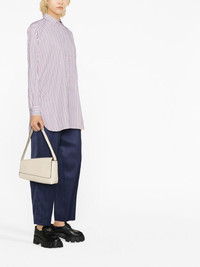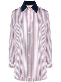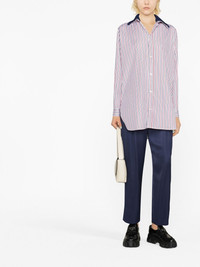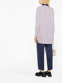 stripe long-sleeved shirt Striped throughout in red, blue and white, this Plan C shirt is crafted from cotton and cut for a relaxed fit. It is characterised by its double collar design, and is framed by long sleeves and a curved hem. Made in Italy Composition Cotton 100%, Polyester 99%, Spandex/Elastane 1% SIZE & FIT Model measurements Height 5 ft 10 in(1.79 m) Bust/Chest 31.49 in(80 cm) Hips 35.03 in(89 cm) Waist 23.62 in(60 cm) FittingInformation This piece fits true to size. We recommend you get your regular size Cut for a loose fit Made with a mid-weight fabric Washing instructions Machine Wash