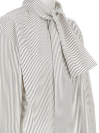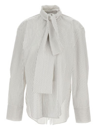 striped tie-neck shirt Highlights - White/blue/green - Vertical stripe pattern - Tie neck - Front closure - Long sleeves - Buttoned cuffs Made in Italy Composition Cotton 100% Washing instructions Read Manufacturer Guidelines