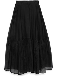 organza maxi skirt Highlights - Black - Concealed rear hook and zip fastening - Two side inset pockets - Partial lining - Pleat detailing Made in Italy Composition Lining: Cupro 100% Outer: Cotton 100% SIZE & FIT Model measurements Height 5 ft 9 in(1.75 m) Bust/Chest 34.64 in(88 cm) Hips 36.61 in(93 cm) Waist 26.37 in(67 cm) FittingInformation This maxi-length skirt is intended to be worn just below the waist Made from a lightweight non-stretch fabric