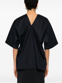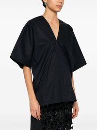 V-back top Highlights - Midnight blue - V-neck - Short sleeves Made in Italy Composition Cotton 100% SIZE & FIT Model measurements Height 5 ft 9 in(1.76 m) Bust/Chest 31.88 in(81 cm) Hips 35.43 in(90 cm) Waist 24.8 in(63 cm) FittingInformation Designed to be unstructured, offering a loose fit throughout Made from a midweight non-stretch fabric