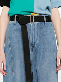 wide-leg cargo jeans Highlights - Indigo blue - Concealed front button, hook and zip fastening - Detachable waist belt - Belt loops - Two side welt pockets Made in Italy Composition Lining: Cotton 65%, Polyester 35% Outer: Cotton 100% SIZE & FIT Model measurements Height 5 ft 10 in(1.77 m) Bust/Chest 31.1 in(79 cm) Hips 34.64 in(88 cm) Waist 24.01 in(61 cm) Measurement FRONT RISE 16.33 in(41.5 cm) INSIDE LEG 31.1 in(79 cm) HIPS 44.09 in(112 cm) WAIST 35.43 in(90 cm) FittingInformation Designed with a wide leg cut, these jeans allow for a close fit at the waist and offer a loose and roomy fit over the leg Sturdy and hard-wearing, this denim piece offers no stretch