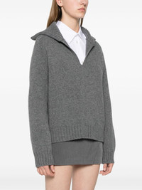 melange sweater Highlights - Medium grey - Wool-cashmere blend - Knitted construction - Melange effect - Ribbed wide collar - V-neck - Long sleeves - Ribbed cuffs and hem Made in Italy Composition Wool 70%, Cashmere 30% SIZE & FIT Model measurements Height 5 ft 9 in(1.75 m) Bust/Chest 31.88 in(81 cm) Hips 34.64 in(88 cm) Waist 24.01 in(61 cm) FittingInformation Designed for a relaxed fit, this piece allows for comfort and movement when worn Made with a midweight knit, this piece offers some stretch This piece fits true to size – take your usual size