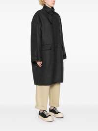 felted coat Highlights - Anthracite grey - Recycled wool blend - Felted - Concealed front press-stud fastening - Melange effect - Gathered tie neck - Drop shoulder - Long sleeves - Press-stud fastening cuffs - Two front flap pockets - American rear vent - Unlined - Straight hem - Long length Made in Italy Composition Outer: Recycled Wool 68%, Polyamide 20%, Polyester 12% Lining: Cotton 100% SIZE & FIT Model measurements Height 5 ft 9 in(1.74 m) Bust/Chest 34.64 in(88 cm) Hips 36.61 in(93 cm) Waist 26.37 in(67 cm) FittingInformation Designed to be unstructured, offering a loose fit throughout Made from a midweight non-stretch fabric