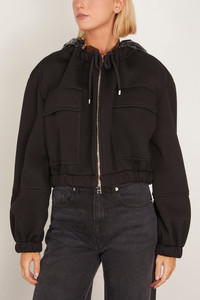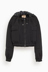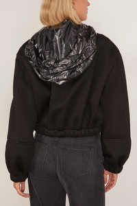 The Plan C Jacket in Black is a must-have piece from their Fall 25 Collection. This bomber jacket features a modern, cropped length with a detachable shiny hood and patch pockets. Wear yours over a button down with jeans. FIT DESCRIPTION MODEL MEASUREMENTS - Fits true to size, take your normal size - Bomber jacket - Cropped length - Zip front - Detachable hood - Patch pockets - Drop shoulders - Scuba material - 76% viscose 24% nylon Lining 100% cotton - Harriet is wearing a size 38/ 2 US - Bust: 32" - Waist: 24" - Hips: 30.5" - Height: 5’8.5”