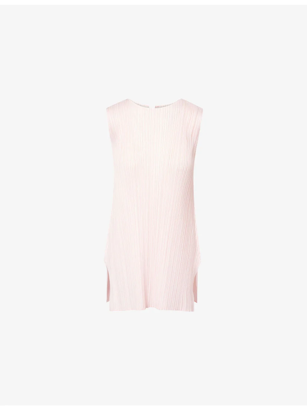PRODUCT DETAILS - Pleats Please Issey Miyake knitted top - 100% polyester - Regular fit, sleeveless, A-line silhouette, round neckline, side slits, pleated tunic - Machine wash cold - Made in Japan - Size 3: length 30in / 76cm - Model is 5ft 10in/1.78m and wears a size 3 - Lightweight, slight stretch - This garment’s sizing is based on height and doesn’t conform to standard sizes. Please refer to the size guide for your desired length. Ref: R04599894