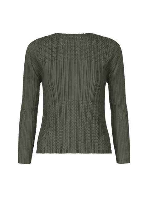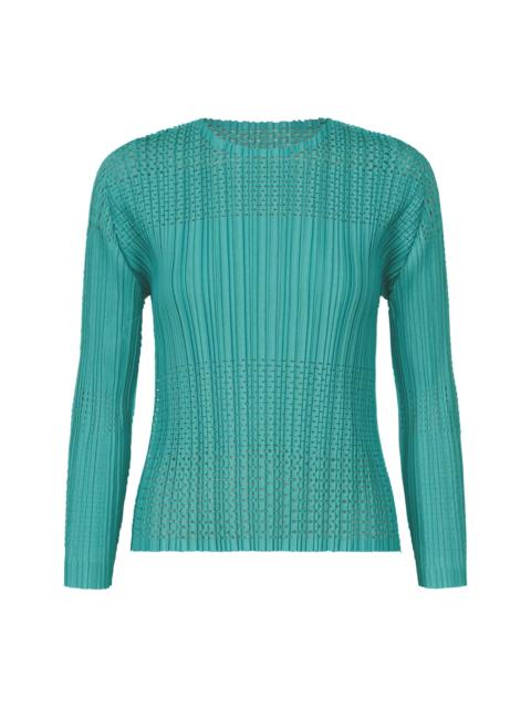 This A-POC series round-neck, long-sleeved top features a cool, sheer feel. Mesh pieces of varying sizes are arranged in a gradation pattern, letting you enjoy layered looks. Product Information Material: 100% polyester Made in Japan Neckline / Collar:Crew neck