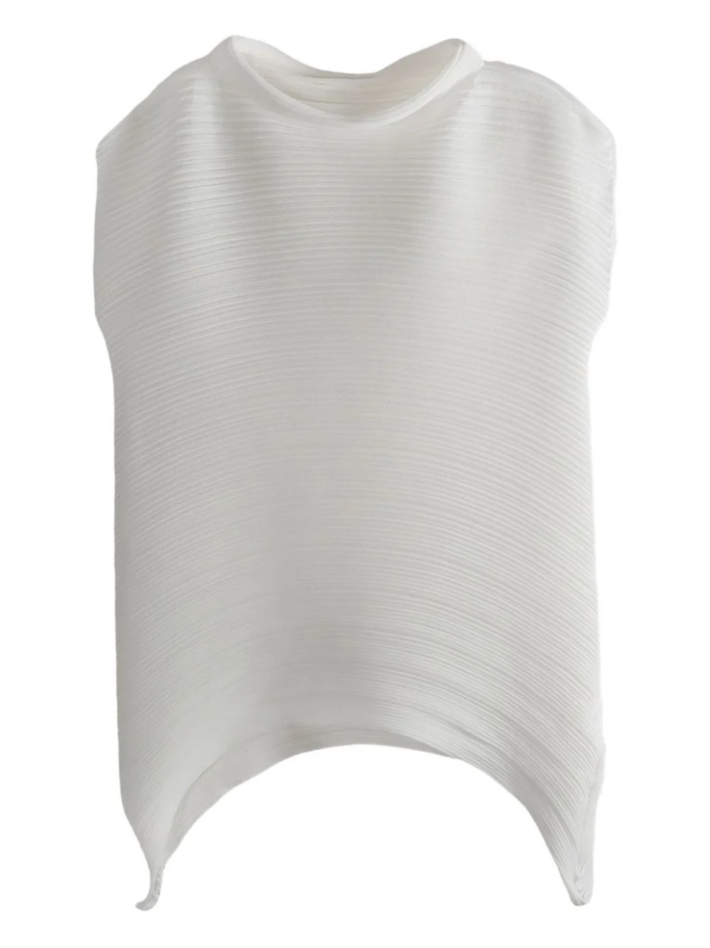 asymmetrical-hem pleated top Highlights - White - Pleated texture - Sleeveless - Asymmetrical hem Imported Composition Fabric 100% Washing instructions Read Manufacturer Guidelines