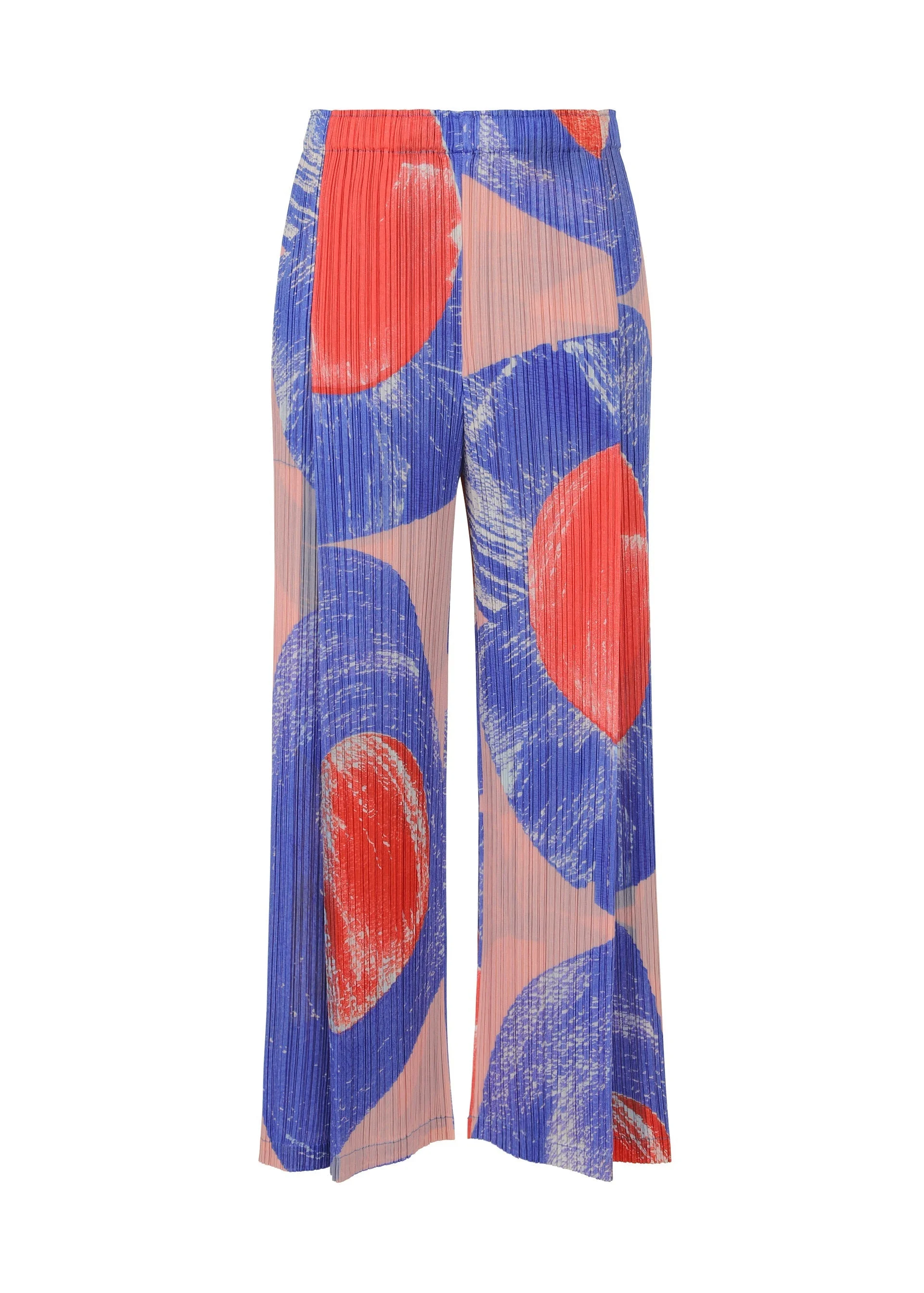 Tucked pants with a dynamic curved print using paper printing techniques. There are pockets on both sides. Product Information Material: 100% polyester Country of origin: Japan Waist specifications:rubber Pocket (position):both sides