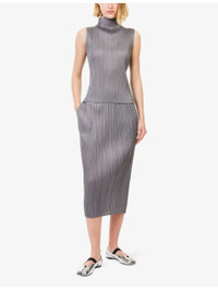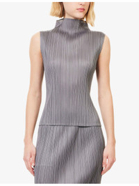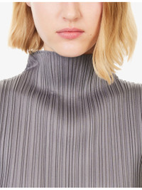 PRODUCT DETAILS - Pleats Please Issey Miyake knit top - 100% polyester - Regular fit, mock neck, sleeveless, all-over pleating - Machine wash at 30°C - True to size - Model is 5ft 10in/1.78m and wears a size 3 - Lightweight, stretchy - This garment’s sizing is based on height and doesn’t conform to standard sizes. Please refer to the size guide for your desired length. Ref: R04557121