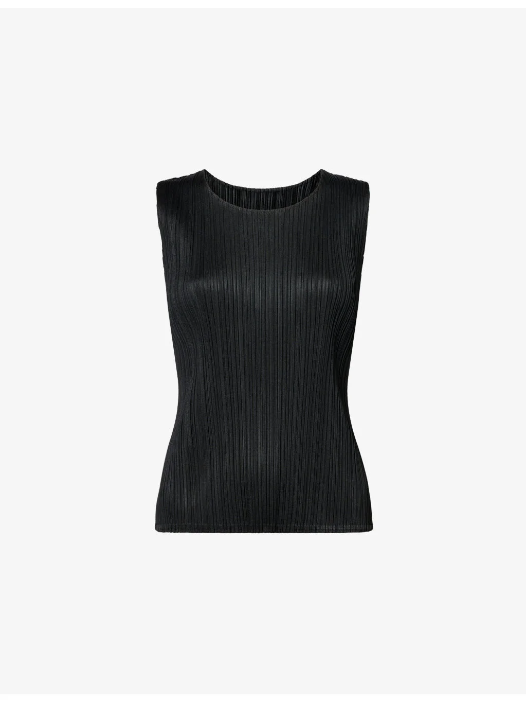 PRODUCT DETAILS - Pleats Please Issey Miyake knitted top - 100% polyester - Regular fit, scoop neckline, sleeveless, pleats texture - Machine wash cold - Made in Japan - Size 3: length 21in / 53cm - Model is 5ft 10in/1.78m and wears a size 3 - Lightweight, slight stretch - This garment’s sizing is based on height and doesn’t conform to standard sizes. Please refer to the size guide for your desired length. Ref: R04557123