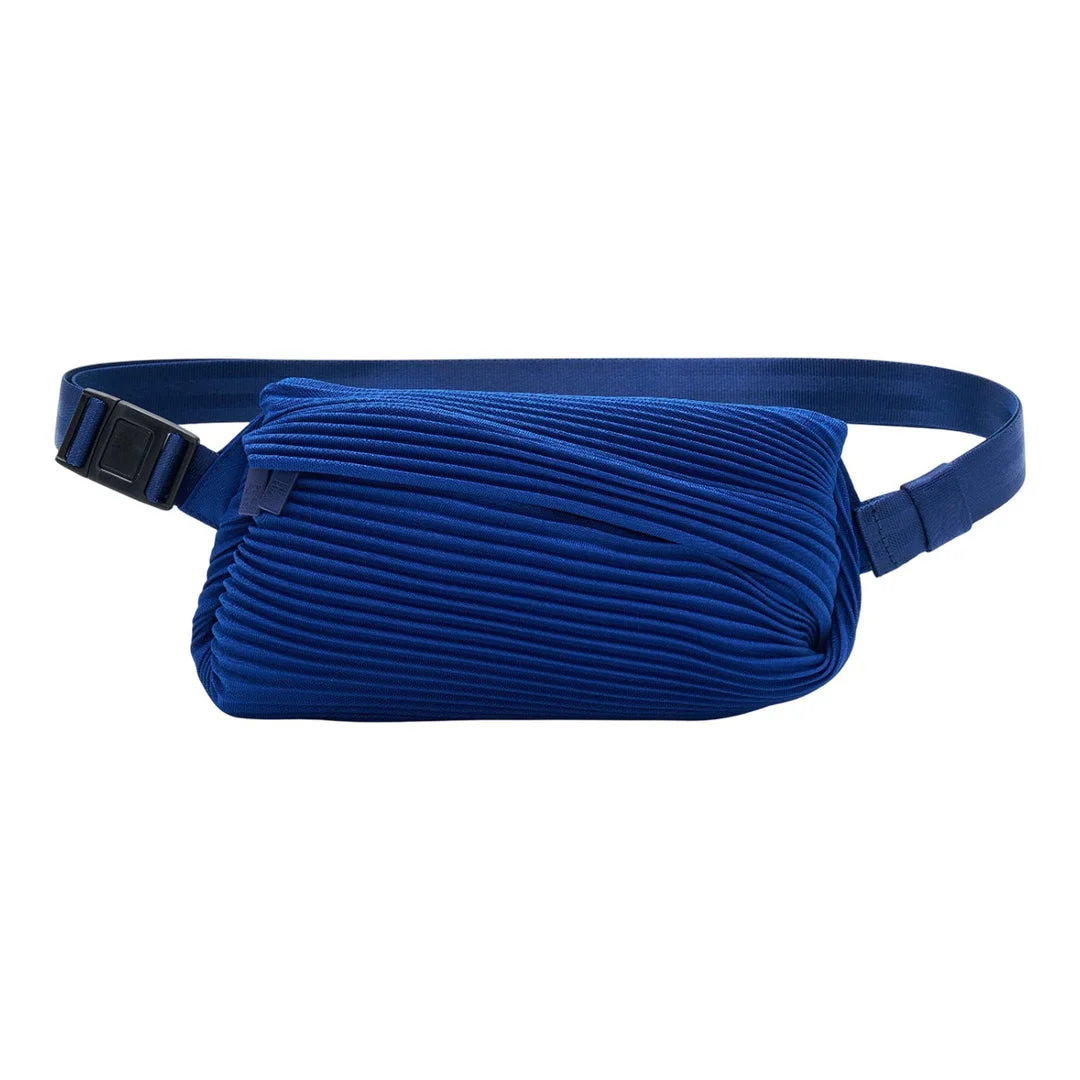 600072538BLU000 / PP59AG511/00/72/JUL - Signature diagonal bias pleats construction - Adjustable webbed belt strap - Plastic quick-release buckle closure - Main zip compartment - Lightweight pleated polyester fabric - Wrinkle-resistant material - Compact waist pack design PLEATS PLEASE ISSEY MIYAKE Bias Pleats Waistbag delivers innovative Japanese design with signature pleated texture and functional versatility. Crafted from the brand's distinctive pleated fabric in vibrant blue, featuring diagonal pleat construction that creates dynamic visual movement. The lightweight, wrinkle-resistant material and compact silhouette make it an ideal companion for modern urban lifestyle.
