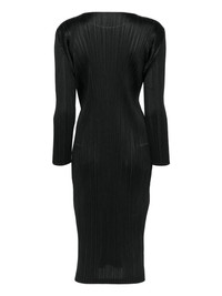 Monthly Colors: February midi dress Highlights - Black - Plisse effect - Crew neck - Long sleeves Imported Composition Polyester 100% SIZE & FIT FittingInformation Designed for a slim fit that sits just away from the body offering a close yet comfortable fit The pleated construction on this piece allows for additional movement and flexibility in the fit This piece's size conversion is based on body measurements; for help with this item's sizing, refer to our Size & Fit Guide