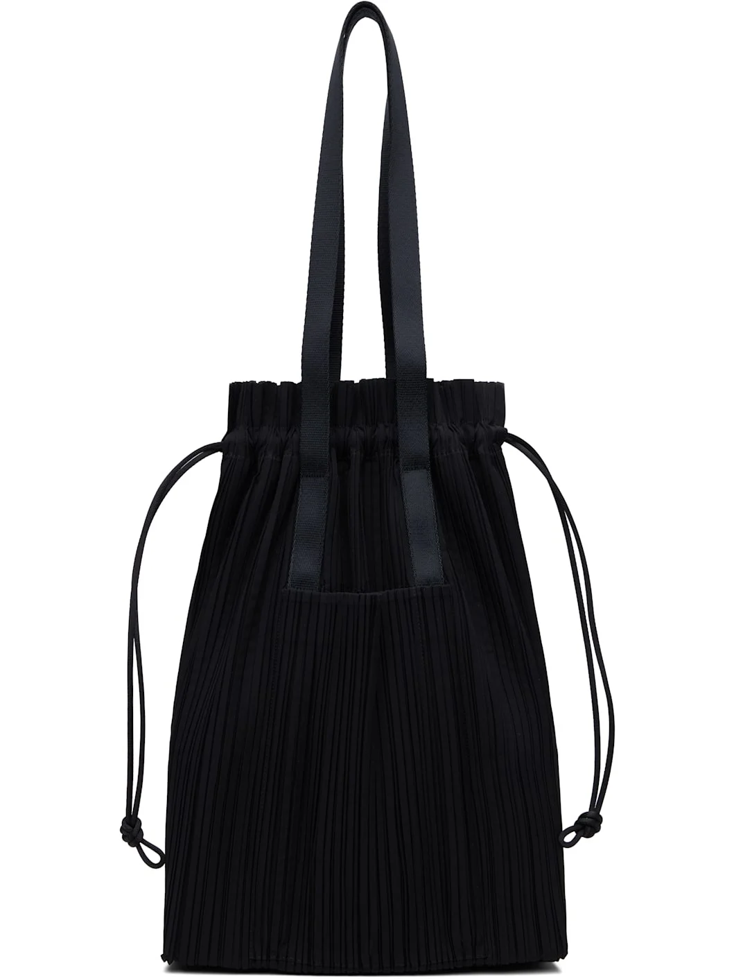Garment-pleated taffeta tote in black. · Webbing shoulder straps · Patch pocket at face and back · Drawstring closure · H14.5" x W15.5" x D4.75" Supplier color: Black 100% polyester. Made in Philippines 252941F049002