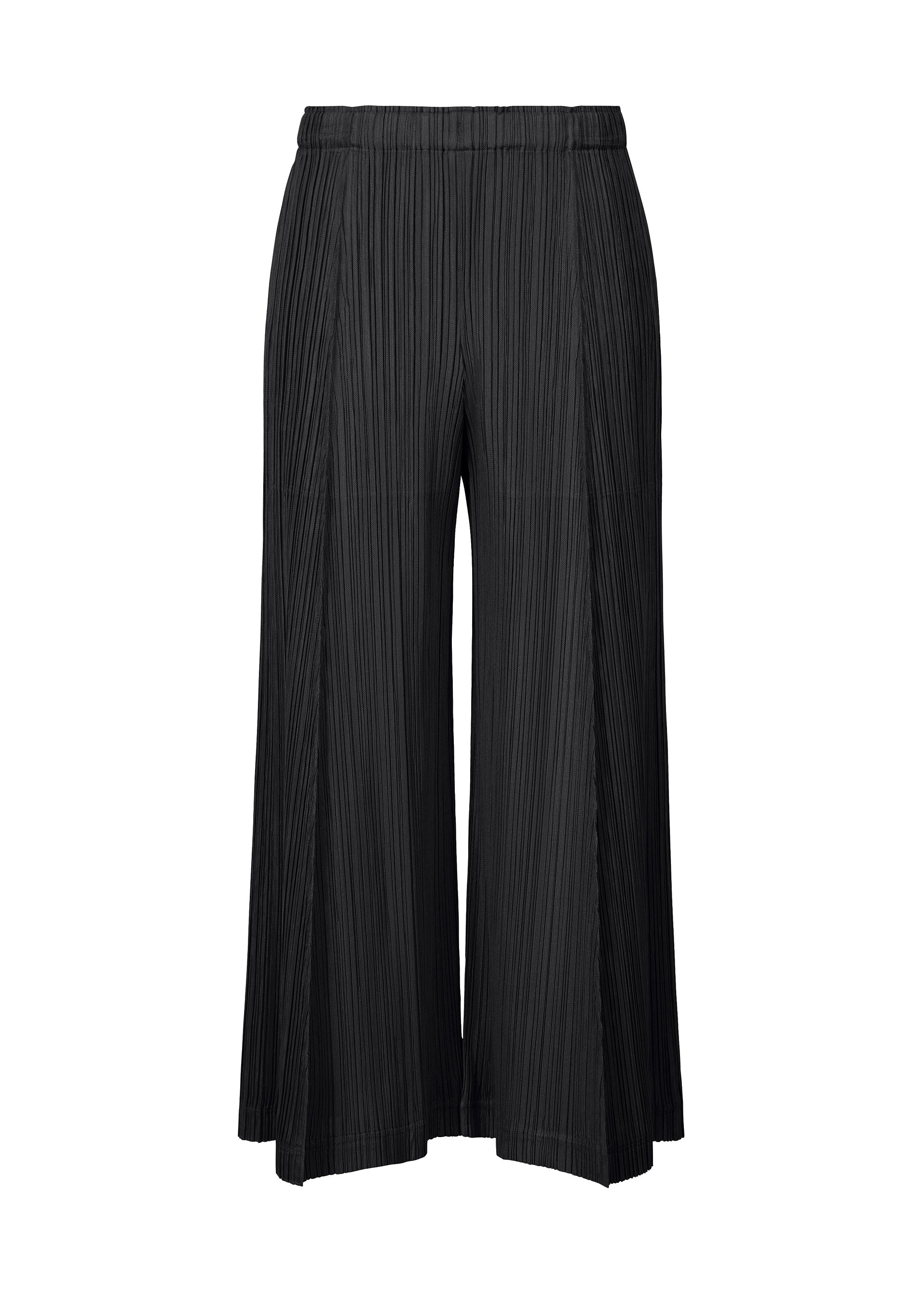 These flared pants are made from thick fabric. They have pockets on both sides.