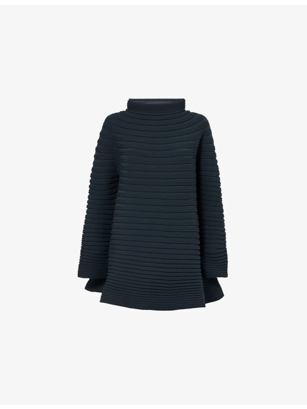 PRODUCT DETAILS - Pleats Please Issey Miyake knitted top - 100% polyester - Relaxed fit, high neck, dropped shoulders, long sleeves, all-over knitted and plated, flared silhouette - Machine wash at 30°C - Made in Japan - Model is 5ft 10in / 1.78m and wears one size - Midweight, stretchy - This garment’s sizing is based on height and doesn’t conform to standard sizes. Please refer to the size guide for your desired length. Ref: R04557093