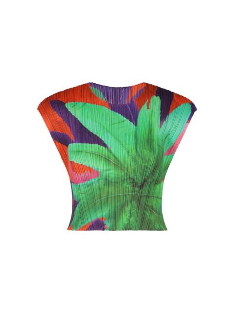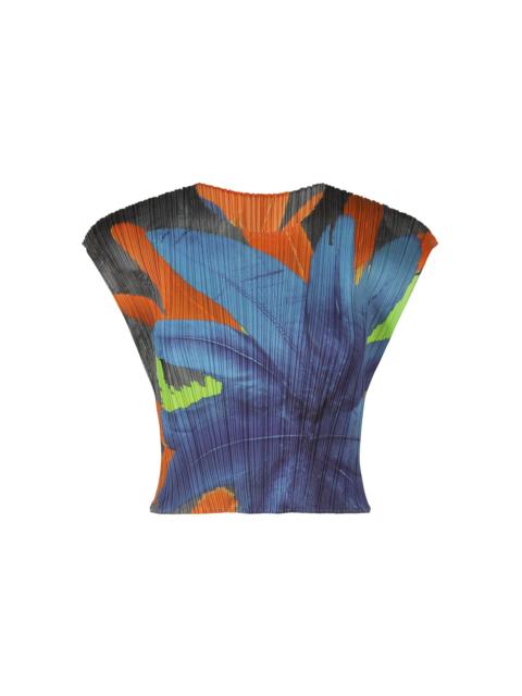 This round-neck, top with French sleeves features a print of a collage of feathers with a colorful floral motif, evoking the mood of an exciting festival. It is characterized by its cropped length that allows it to be layered in outfits. Product Information Material: 100% polyester Made in Japan Neckline / Collar:crew neck