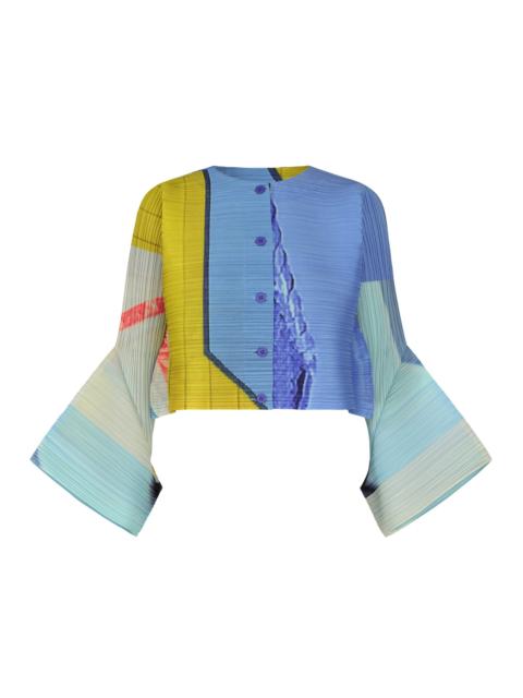 This buttoned cardigan is from a series that incorporates three patterns created by combining photos like a collage to depict changing townscapes. It features horizontal pleating. The pattern of this product varies from item to item. Please note this in advance. Product Information Material: 100% Polyester Made In Japan Neckline / Collar:No collar / crew neck Front opening:button