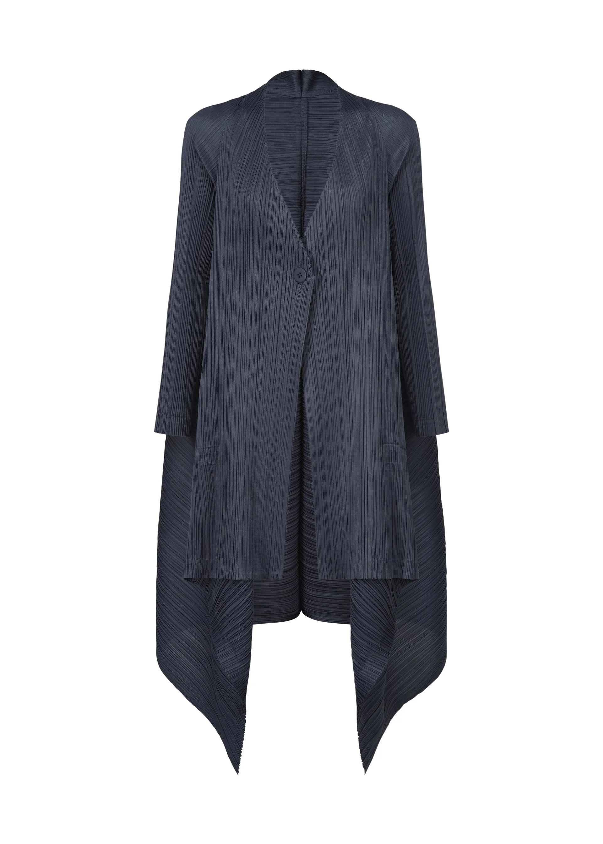 This long buttoned cardigan is characterized by its design featuring vertical pleats on the front and horizontal pleats on the back. It has a voluminous silhouette created by using ample fabric. Product Information Material: 100% Polyester Made In Japan