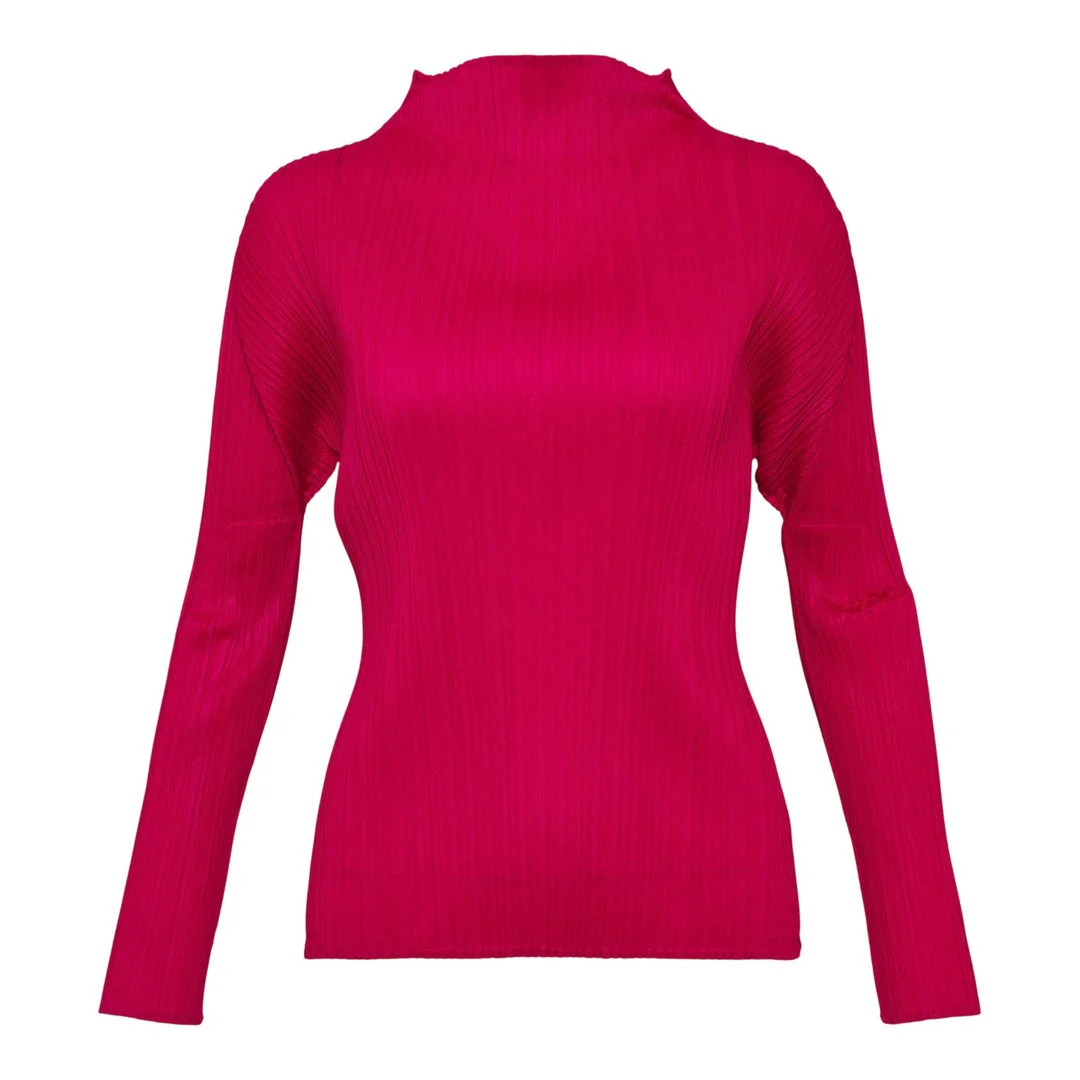 600062157RED003 / PP56JK404/00/23 - Signature heat-set permanent pleats - Mock turtleneck collar - Long sleeves with fitted cuffs - Technical polyester construction - Wrinkle-resistant and travel-friendly - Slim fit silhouette - Machine washable PLEATS PLEASE ISSEY MIYAKE Colorful Basics 4 Shirt delivers innovative pleated design with contemporary functionality and comfort. Crafted from signature technical polyester with heat-set pleats in vibrant fuchsia, featuring the brand's revolutionary garment-pleating technique. The permanent pleats ensure wrinkle-free wear while maintaining structured shape and fluid movement.