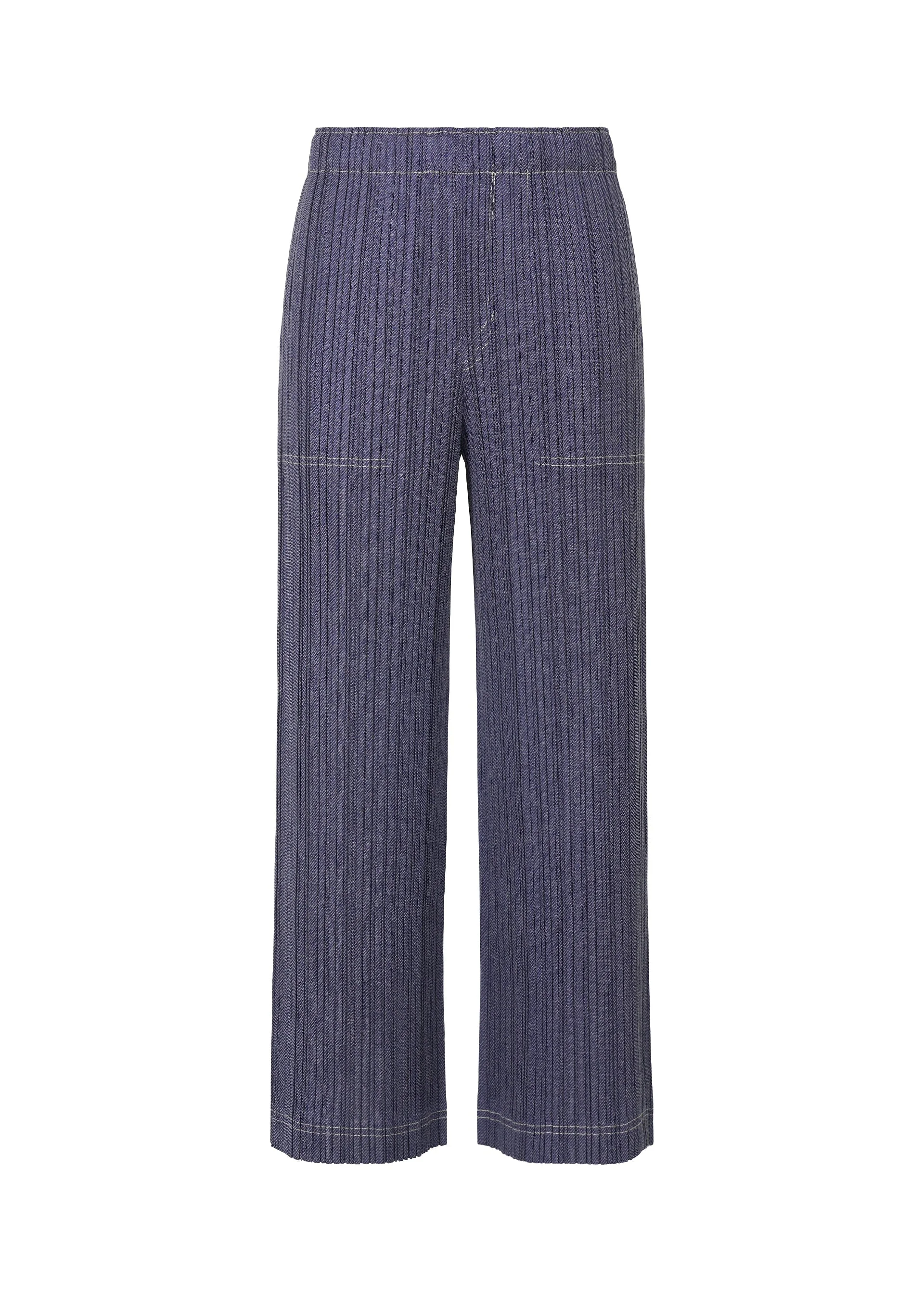 These medium-width straight pants are from a series that pursues a denim-like feel with a cotton-blend textile. They feature stitching in an accent color. There are pockets on the front and back as well as both sides. Product Information Material: 76% polyester, 24% cotton Made in Japan Waist specifications:rubber Pocket (position):Front and back, both sides