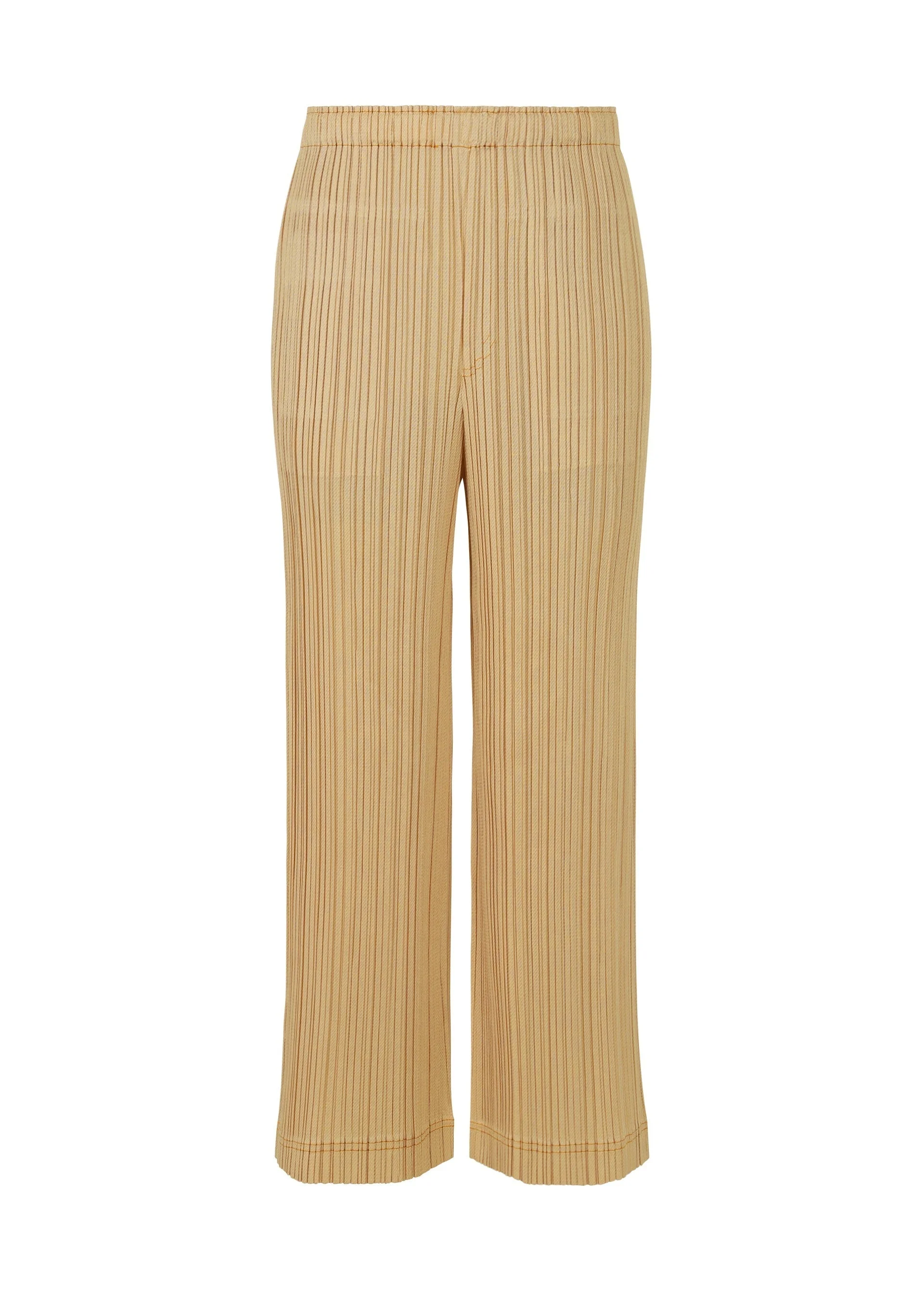 Straight pants made from a textile that incorporates cotton, with a moderate sheen and a denim-like feel. Stitching is done in an accent color that matches the fabric. There are pockets on both the front and back sides. Product Information Material: 76% polyester, 24% cotton Country of origin: Japan Waist specifications:rubber Pocket (position):Both front and rear sides
