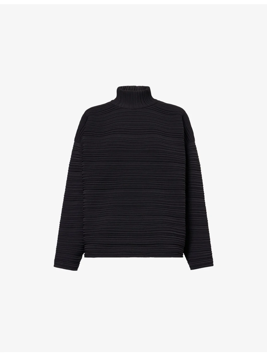 PRODUCT DETAILS - Pleats Please Issey Miyake knitted top - 100% polyester - Relaxed fit, high-neck, dropped shoulders, long sleeves, all-over knitted and ribbed - Machine wash at 30°C - Made in Japan - Model is 5ft 9in / 1.75m and wears one size - Midweight, stretchy - This garment’s sizing is based on height and doesn’t conform to standard sizes. Please refer to the size guide for your desired length. Ref: R04557100