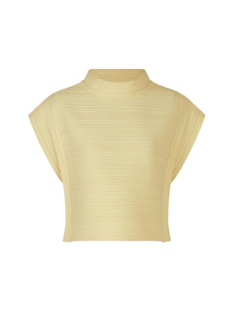 This vest features pleats in a horizontal knitting structure. It is characterized by being easy to care for as it is lightweight and machine-washable due to being made from 100% recycled polyester. Product Information Material: 100% polyester Made in Japan Neckline / Collar:crew neck