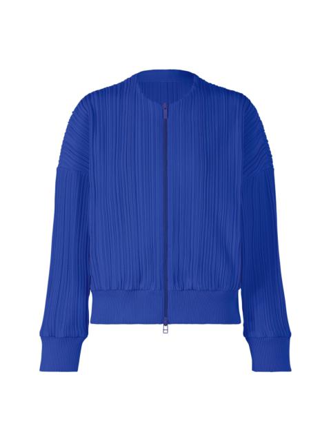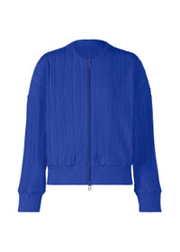 This knit jacket with a zipper features pleats in a horizontal knitting structure. It is characterized by being easy to care for as it is lightweight and machine-washable due to being made from 100% recycled polyester. There are pockets on both sides. Product Information Material: 100% polyester Country of origin: Japan neckline/collar:No collar/round neck Front opening:double zip Pocket (position):both sides