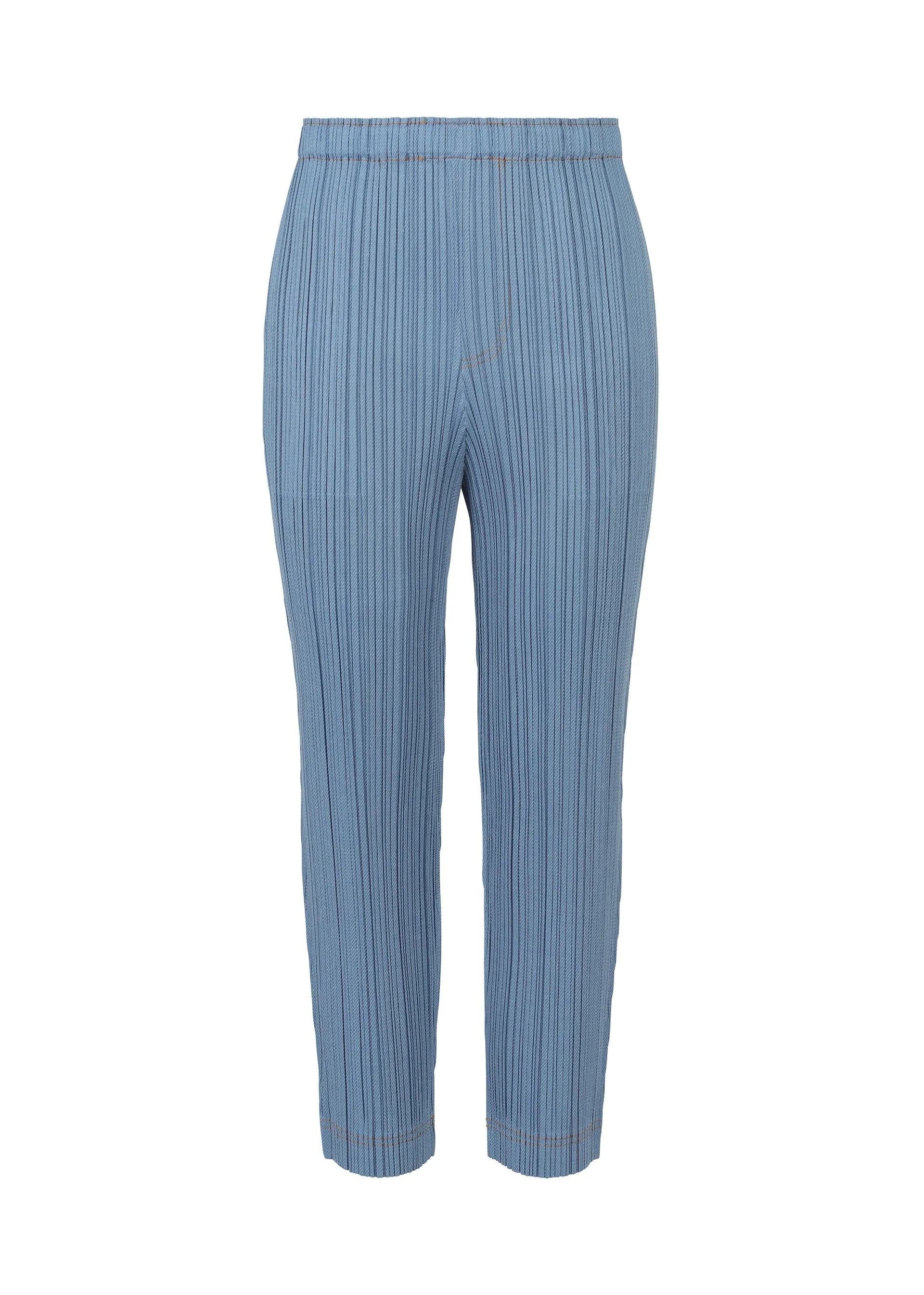 Tapered pants made from a textile that incorporates cotton, with a moderate sheen and a denim-like feel. Stitching is done in an accent color that matches the fabric. There are pockets on both sides. Product Information Material: 76% polyester, 24% cotton Country of origin: Japan Waist specifications:rubber Pocket (position):both sides