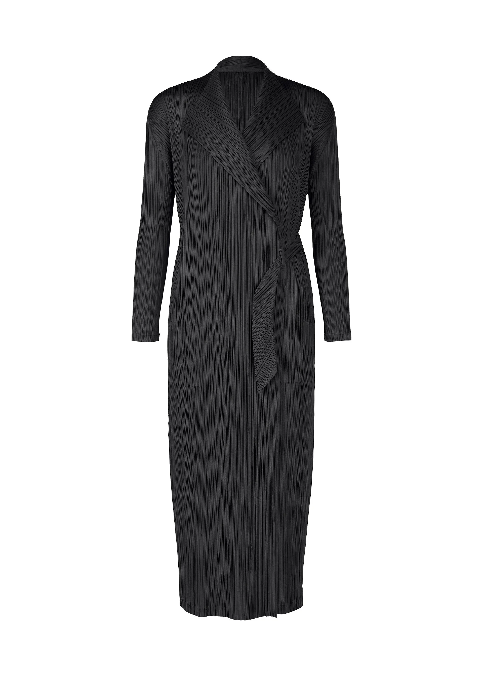 This long coat is characterized by its cord design. It has pockets on both sides. It is designed so that you can adjust it easily by folding the cord and slipping it through the opening. Product Information Material: 100% Polyester Made In Japan Neckline / collar:With collar Front opening:Hidden button / string Pocket (position):Both sides