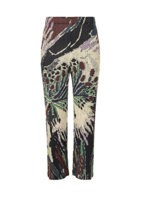 FROSTY FOREST is a dynamic printed series inspired by flowers blooming in frozen air. These pleated pants have a straight leg, two side pockets, and an elastic waistband. Product Code: PP38-JF703 Material: 100% Polyester Care: Machine wash cold, gentle cycle. Only non-chlorine bleach, when needed. Do not tumble dry. Line dry in the shade. Do not iron. Do not dryclean.