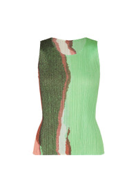 This round-neck, sleeveless top is from a series that uses stencil printing to express a cut-and-pasted pattern of colored paper while preserving the graininess of the colors and misalignment of the print. Product Information Material: 100% polyester Country of origin: Japan neckline/collar:round neck